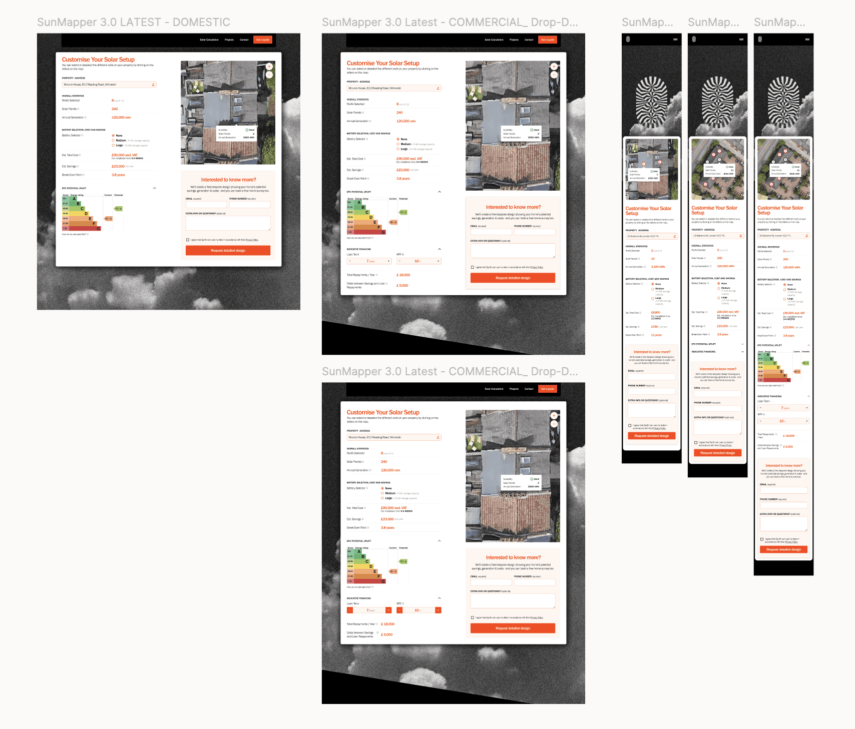 The Experience 1. Entry and Value Proposition The landing page sets expectations immediately, with a single statement that defines the tool: Calculate your solar potential. Instantly find out how much you can generate, save, and spend. 2. Property Input Users enter their address and optionally adjust the roof outline. Messaging guides them calmly through this step, making the tool feel helpful rather than technical. Microcopy explains why location data is needed and how it improves accuracy. 3. Sunlight and Roof Conditions The tool displays modeled sunlight exposure and shading. My job here was to translate technical concepts into approachable language, for example describing annual sunlight as a score with a simple explanation of what influences it. 4. System Recommendations Users receive a suggested panel layout based on their roof and goals. The message framing avoids pressure and instead focuses on personal choice. For example: This setup fits well on your roof and offers strong yearly output. You can adjust the size if your goals or budget differ. 6. Next Steps The tool ends by offering a low friction path forward. If you want exact pricing for your roof, you can request a detailed quote. It is optional and takes about a minute. This balances business needs with user autonomy.
